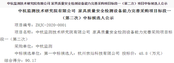 喜讯!今森氧指数测定仪成功中标中杭监测技术研究院仪器采购项目2019.12.20日上海今森监测设备有限公司应杭州宗灿科技有限公司邀约,并参与在中杭监测技术研究院有限公司家具质量安全检测设备能力完善采购项目标段—(第二次)货物投标相关事宜。并于2020年5月18日成功中标。该仪器用于测定各种纺织品包括机织、针织、无纺织物等的燃烧性能,也可用于塑料、橡胶、纸张等的燃烧性能测定。