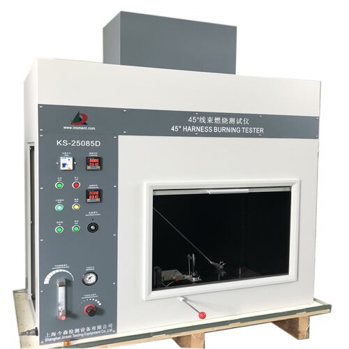 KS-25085D 45°线束燃烧测试仪造型讲究,设备自带通风橱,耐烟气腐蚀,控制部分与试验部分分开控制,使用方便,稳定可靠。