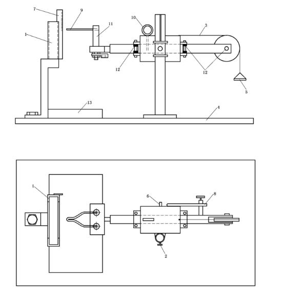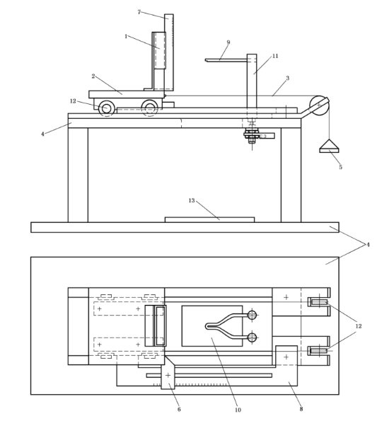 GB/T5169.10一2017中规定灼热丝要对试验样品施加0.95±0.1N的力。当灼热丝或试验样品在水平方向相对移动时,应保持此压力值,灼热丝的顶部或穿透试验样品的深度应限定在7mm士0.5mm。压入深度的不同会影响在规定的试验时间内,灼热丝释放给样品的热量就不同,被灼热丝熔化下来的材料吸收的热量也不同,就有可能会影响试验结果。装置如下图所示