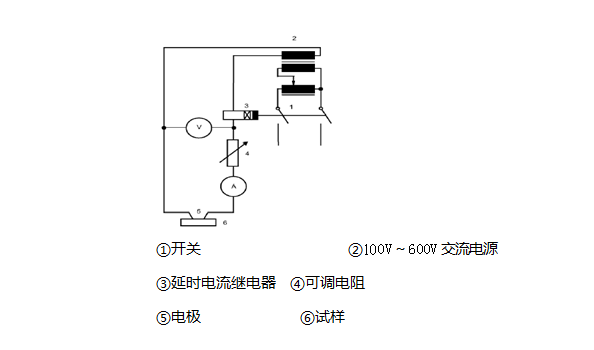 ⑵当试样形成导电回路的电流已达到所设定的≥1.0A,该试验装置自动延2秒后即停机。