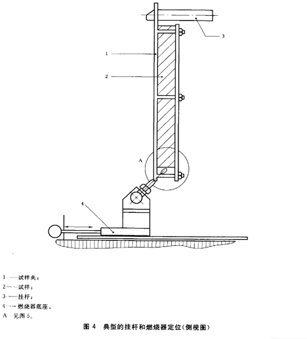 5、将燃烧器角度调到45°角,并用标准中规定的定位器来确认试样与燃烧器的距离,如下图所示
