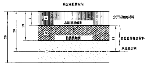 H.若材料是由若干层叠合而成,但又不属于层积复合材料,则应由暴露面起13mm厚之内所有各层单一材料分别取样进行试验,取样示例见下图(单位为毫米)。